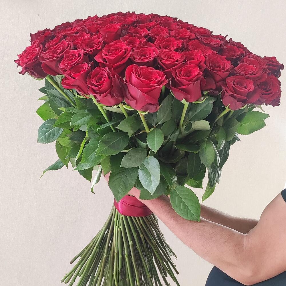 101 красная роза 50 см в букете
