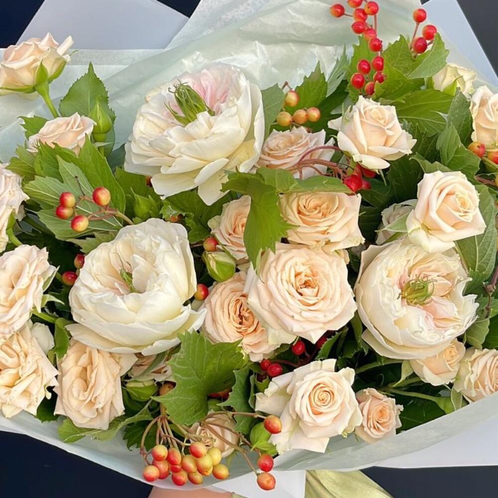 Гвоздики, Кустовые розы, Пионовидные розы, Розы