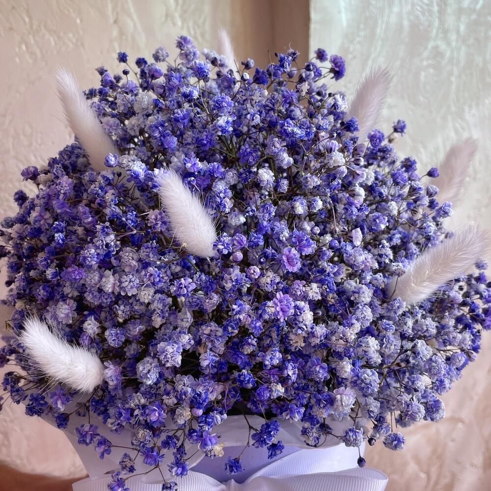 Гипсофила – 7 шт. Лагурус – 11 шт. Оазис флористический – 1 шт. Лента репсовая – 1 шт. коробка шляпная d15 – 1 шт.