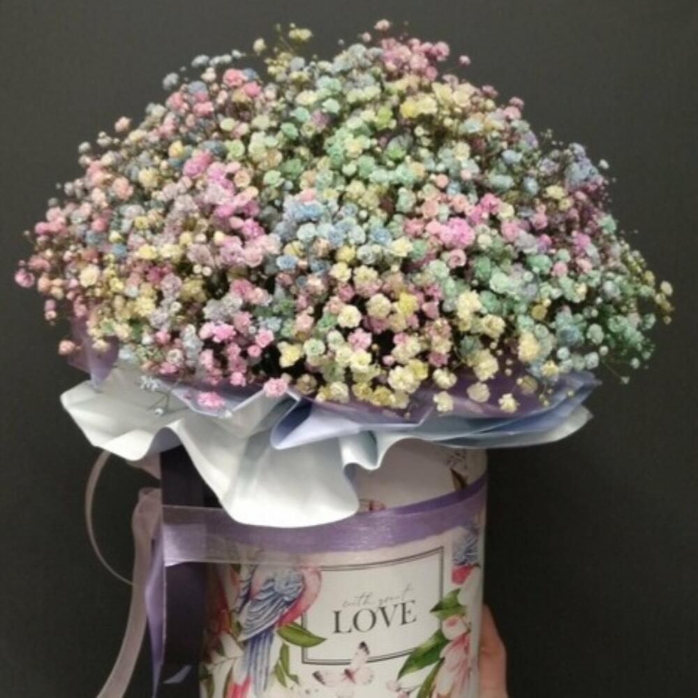 Коробка с радужной гипсофилой размер L