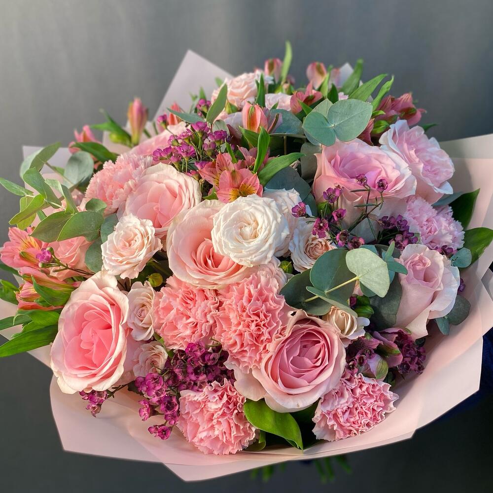 Гвоздики, Кустовые розы, Лизиантусы, Пионовидные розы, Розы