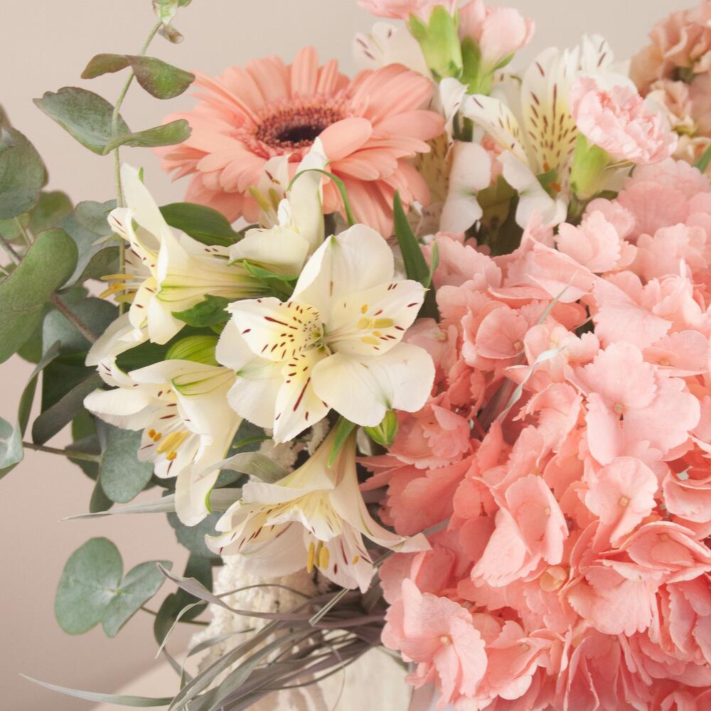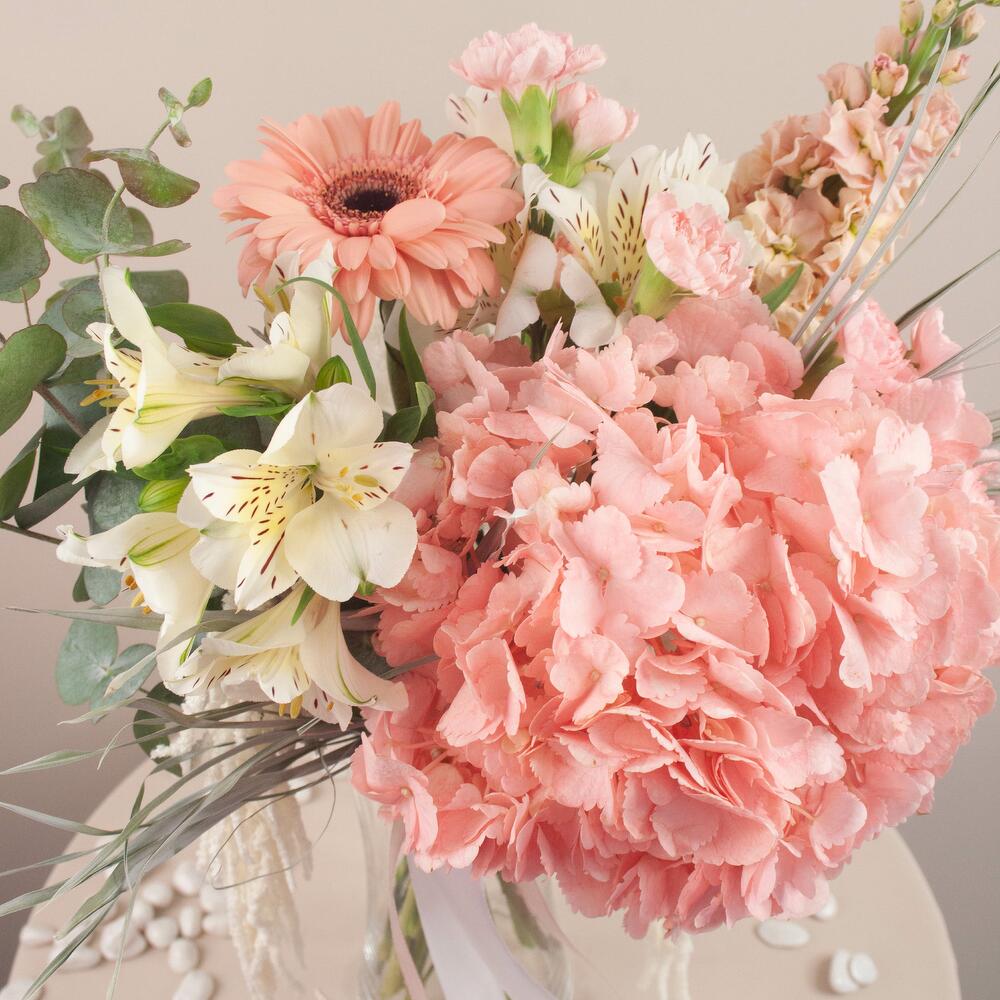 Альстромерии, Гвоздики, Кустовые розы, Лизиантусы, Розы, Хризантемы
