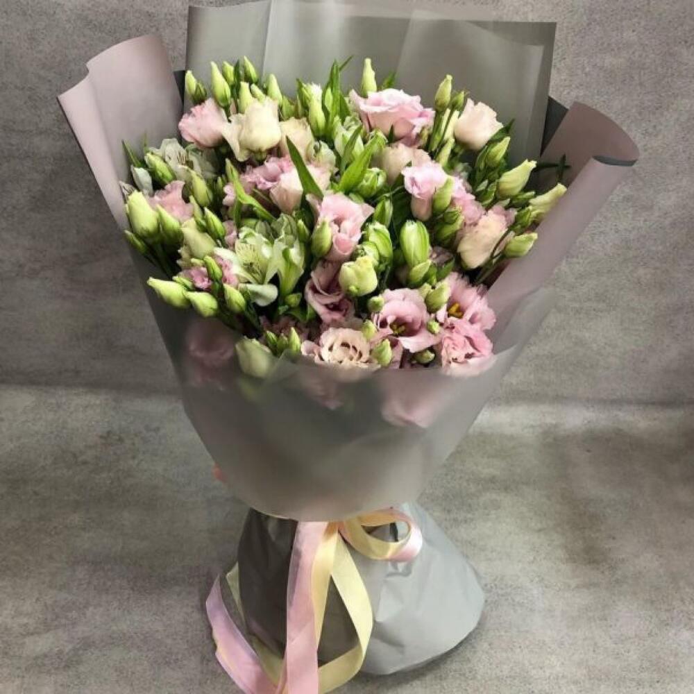 Гвоздики, Лизиантусы, Розы, Тюльпаны
