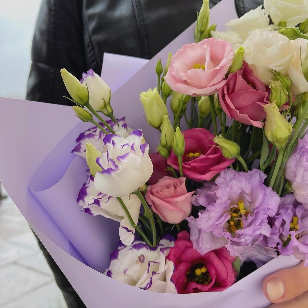 эустома микс – 7 шт.Упаковка – 1 шт.Лента – 1 шт.