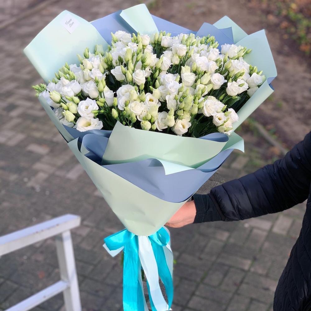 Эустома – 37 шт.цветная бумага – 1 шт.Атласная лента – 1 шт.