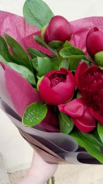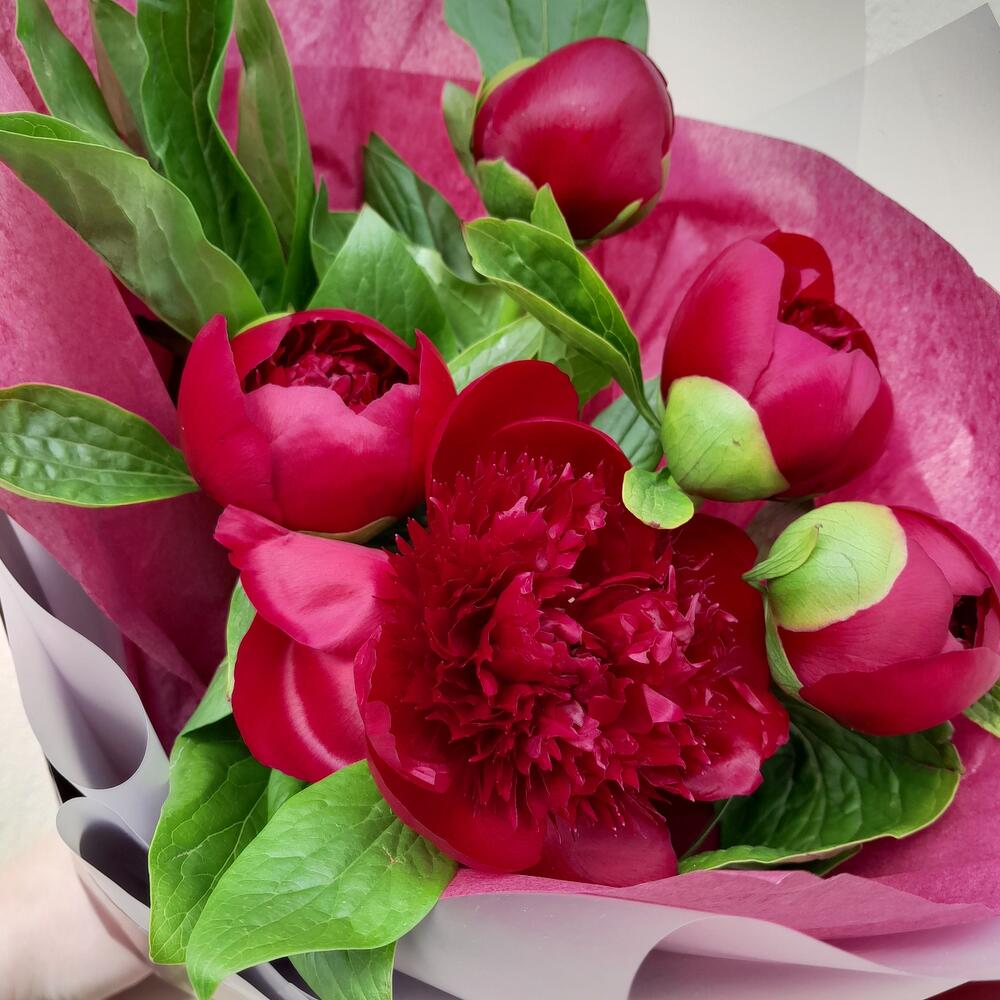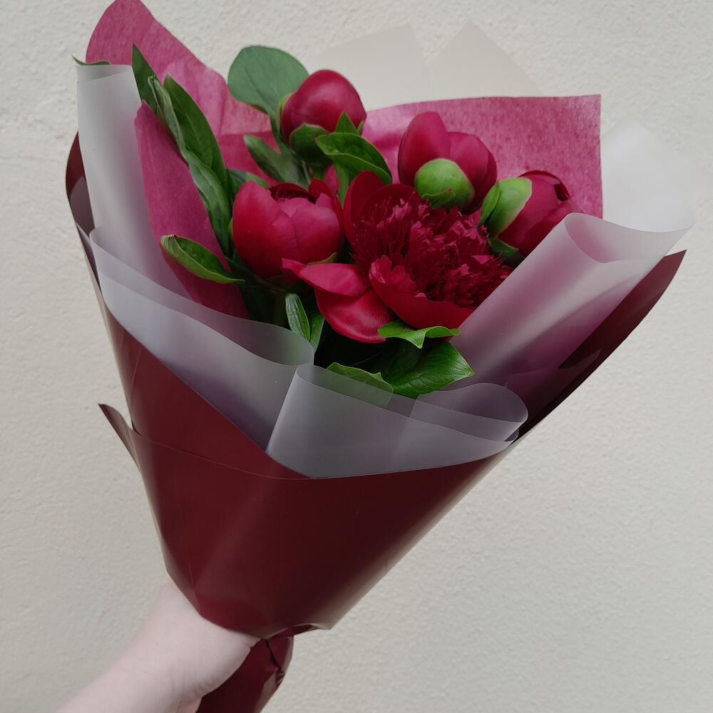 Пион – 5 шт.Лента атласная – 2 шт.Упаковка дизайнерская – 3 шт.