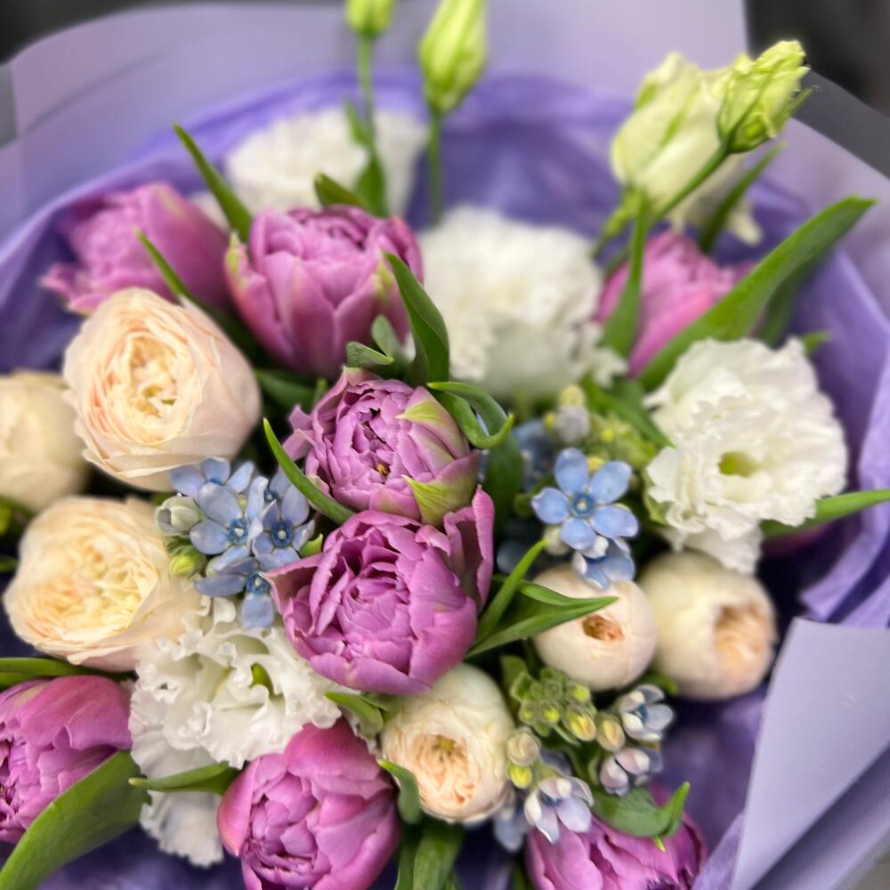 Категорий: Кустовые розы, Лизиантусы, Пионовидные розы, Розы, Тюльпаны