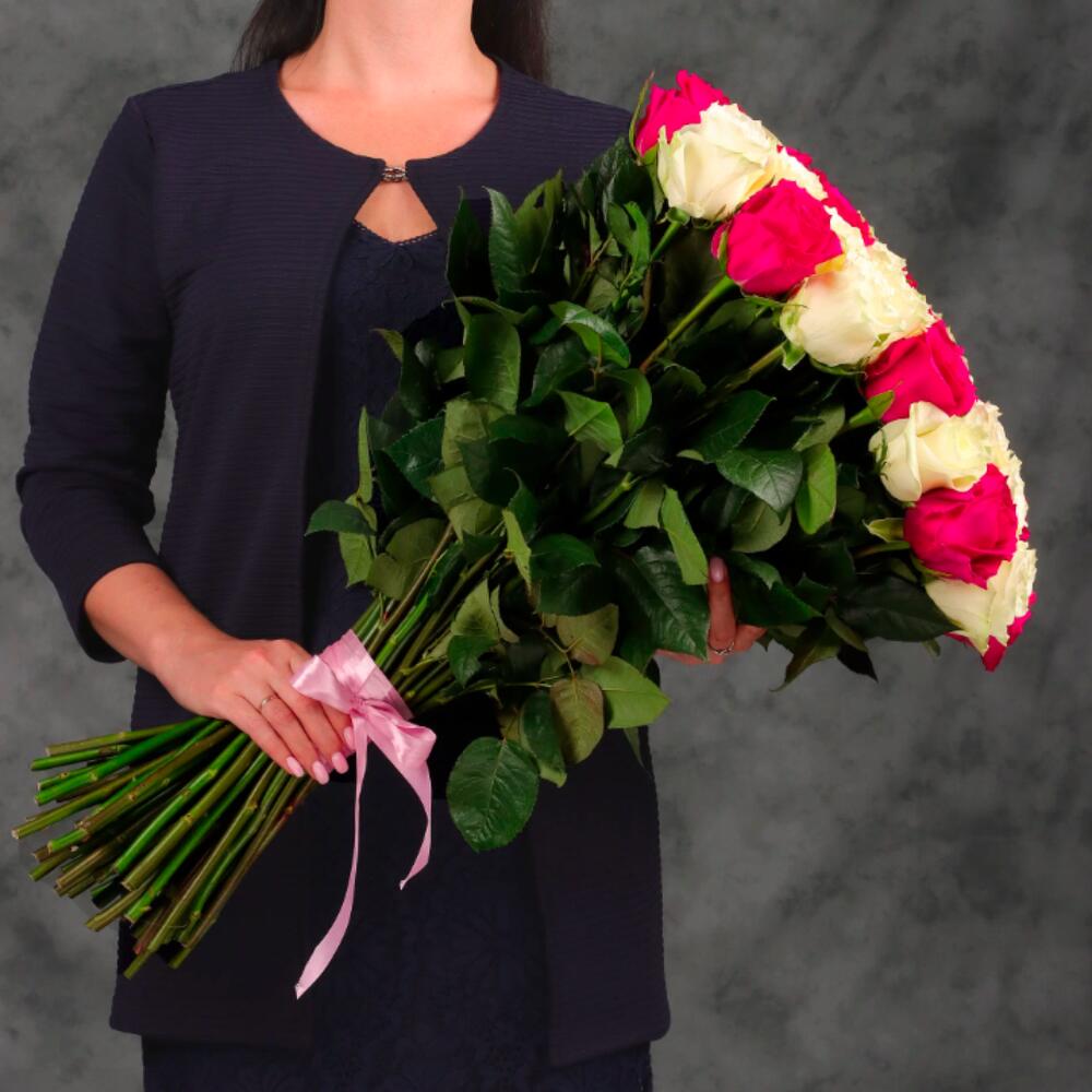 Букет 55 белых и розовых роз
