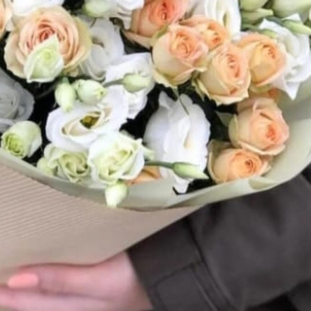 Букет из кустовой розы с эустомой