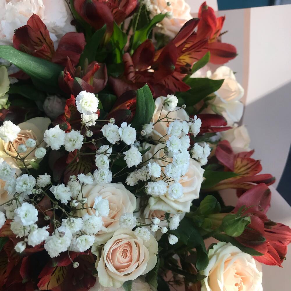 Категории: Альстромерии, Гипсофила, Кустовые розы, Розы
