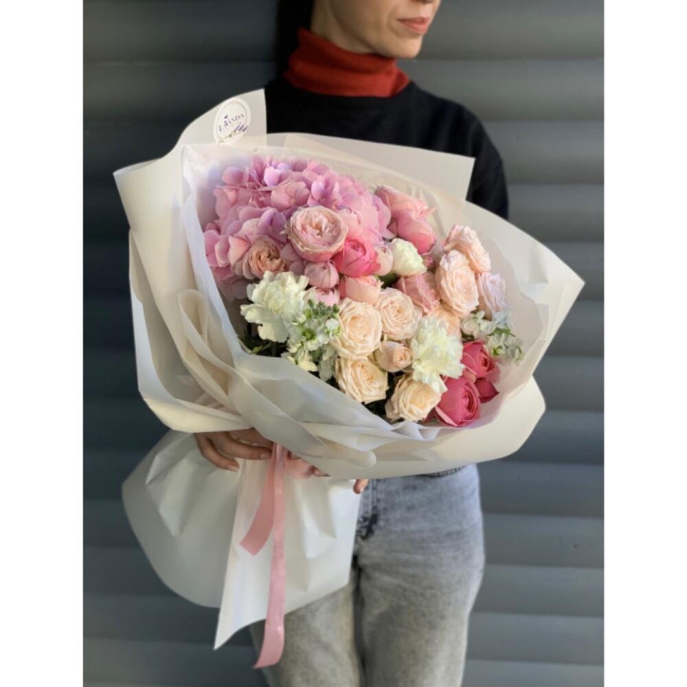 Альстромерии, Кустовые розы, Лизиантусы, Пионовидные розы, Розы, Ромашки