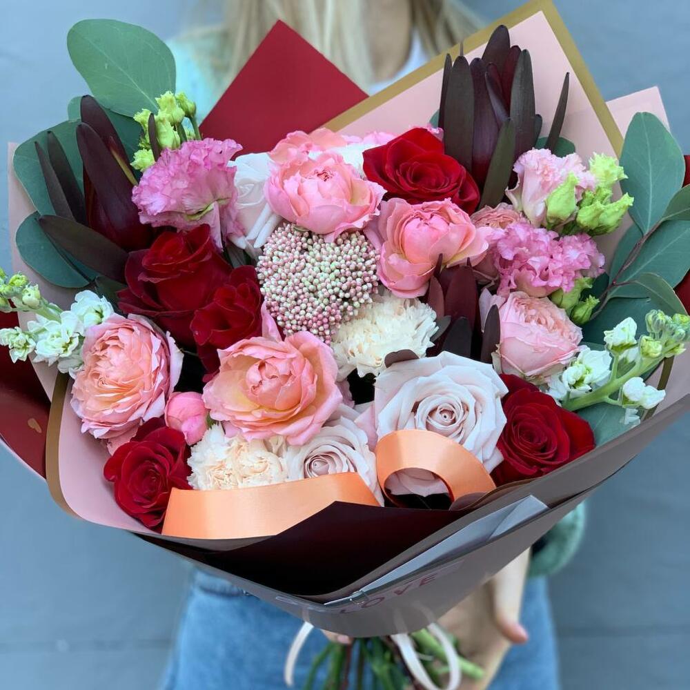 Категорий: Гвоздики, Кустовые розы, Лизиантусы, Пионовидные розы, Розы