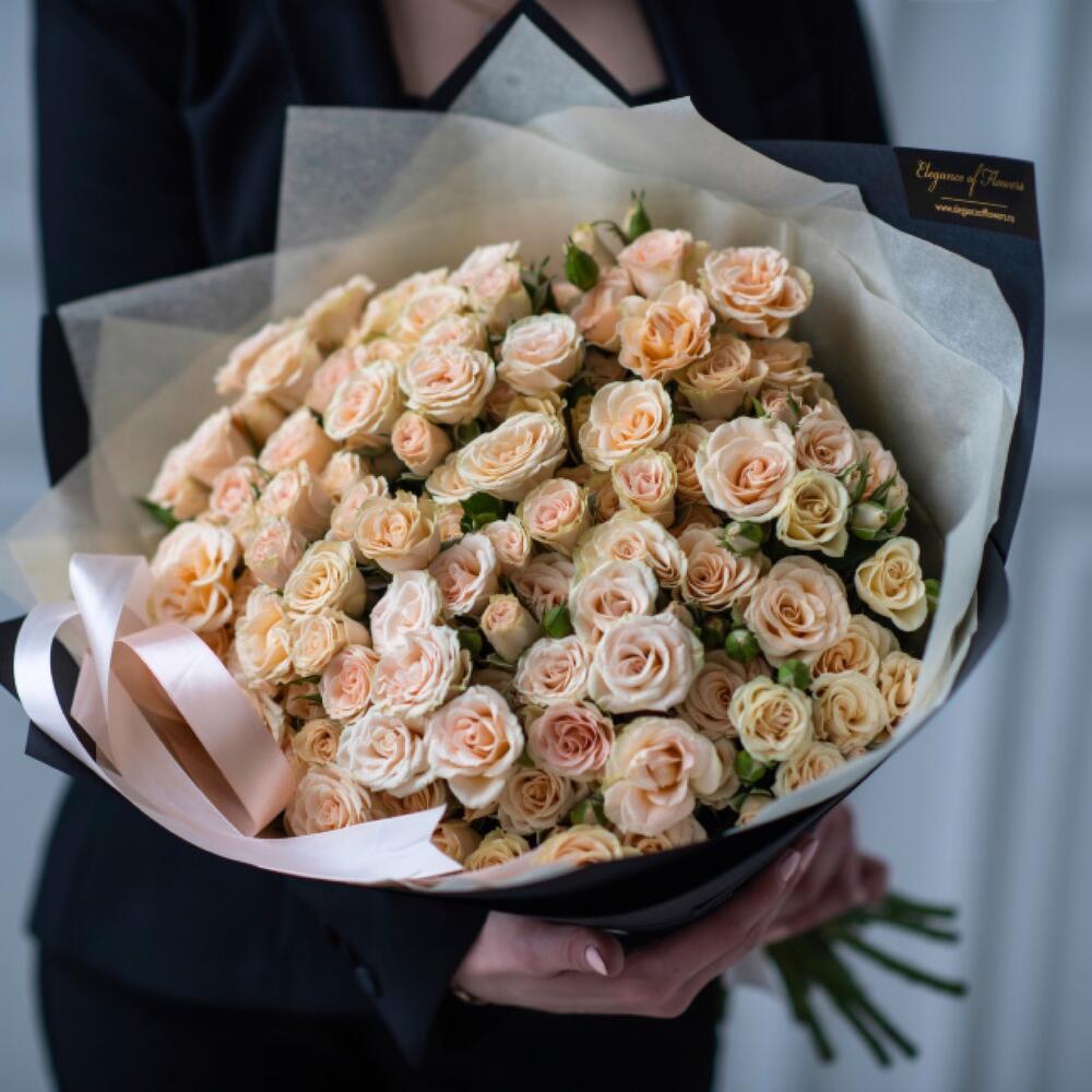 Spray rose – 51 шт. packaging design – 1 шт. gift message card – 1 шт.
