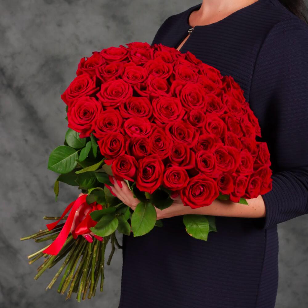 Классический букет из 55 красных роз.