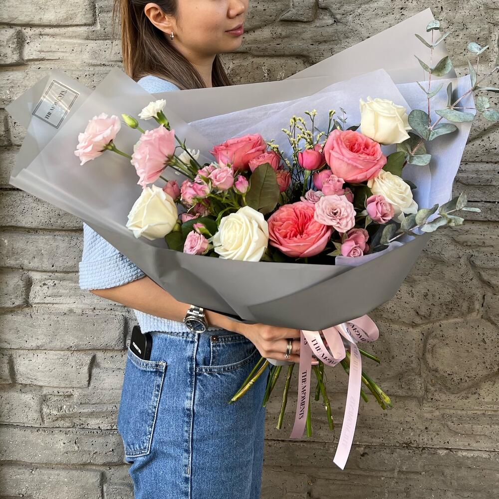 Альстромерии, Кустовые розы, Лизиантусы, Пионовидные розы, Розы, Ромашки