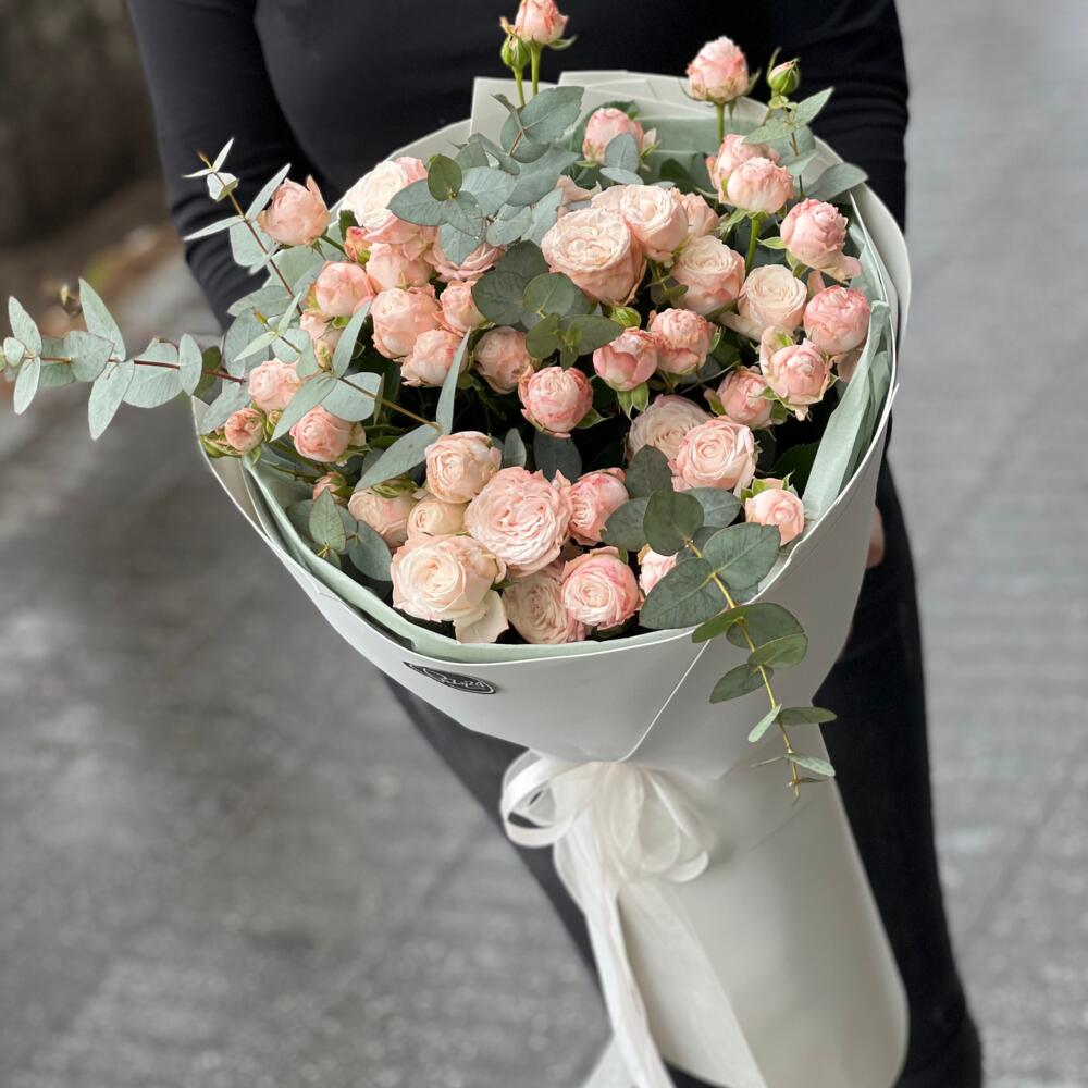 Гвоздики, Кустовые розы, Лизиантусы, Пионовидные розы, Розы