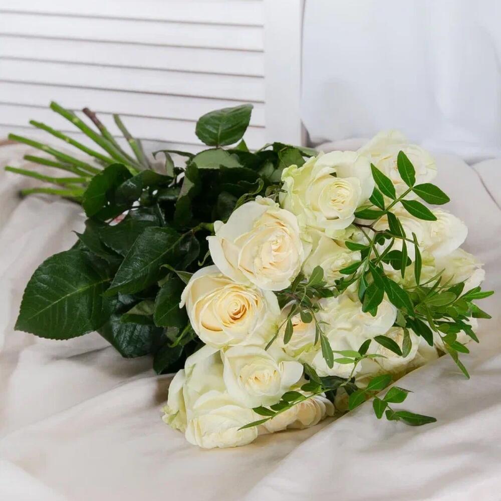 роза mondial 60 см – 19 шт.Фисташка – 2 шт.Пленка прозрачная – 1 шт.Лента атласная – 1 шт.