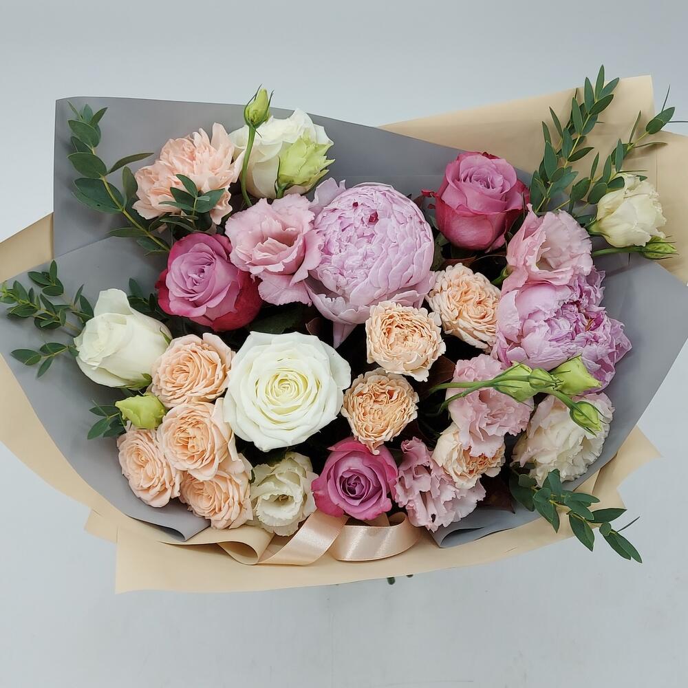 Категорий: Гвоздики, Кустовые розы, Лизиантусы, Пионы, Розы