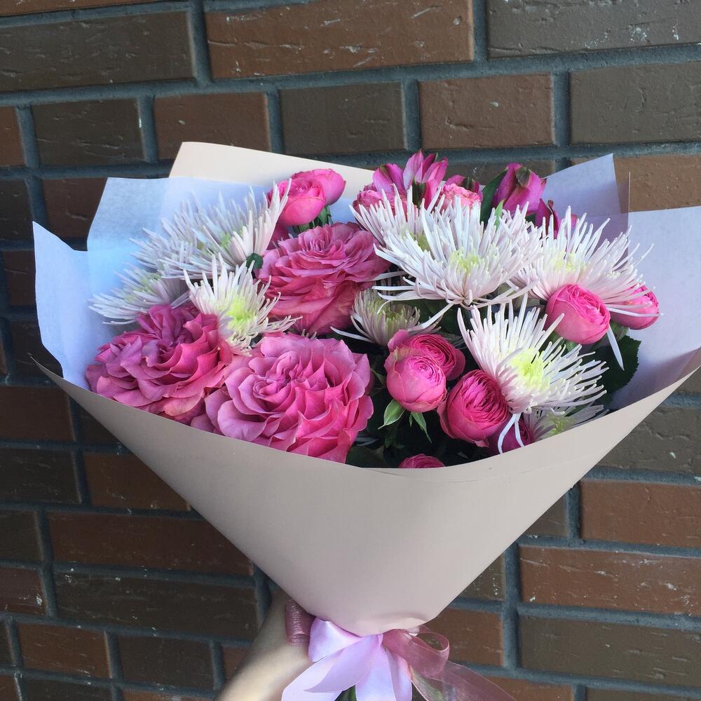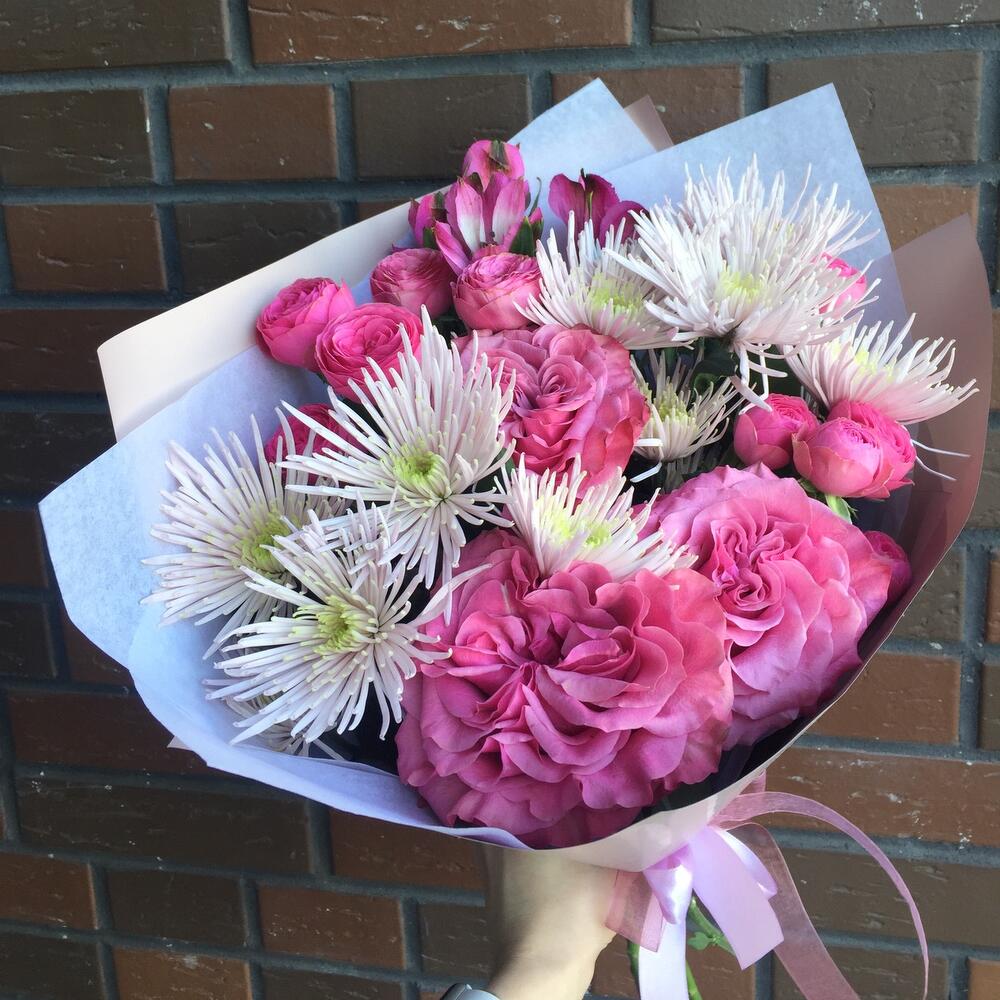 Гвоздики, Кустовые розы, Лизиантусы, Пионовидные розы, Розы
