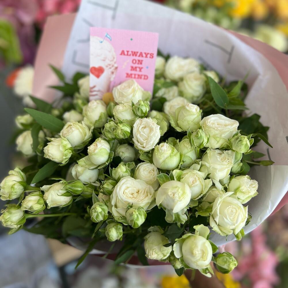Гвоздики, Кустовые розы, Лизиантусы, Пионовидные розы, Розы