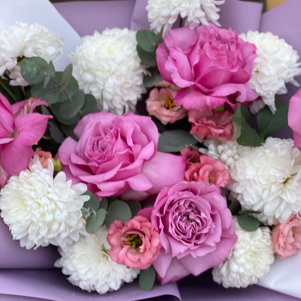 Гвоздики, Кустовые розы, Лизиантусы, Пионовидные розы, Розы