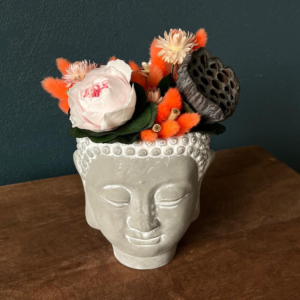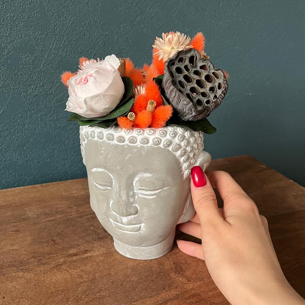 Сухоцветы в кашпо Будда