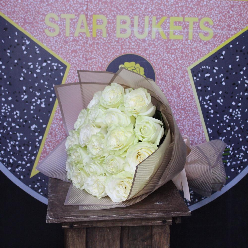 Роза Мондиаль – 19 шт.Пленка дизайнерская – 3 шт.Лента атласная – 1 шт.