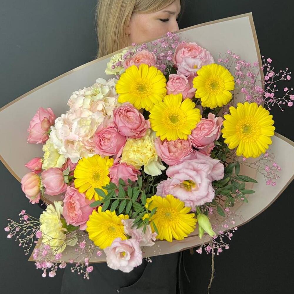 Альстромерии, Кустовые розы, Лизиантусы, Пионовидные розы, Розы, Ромашки