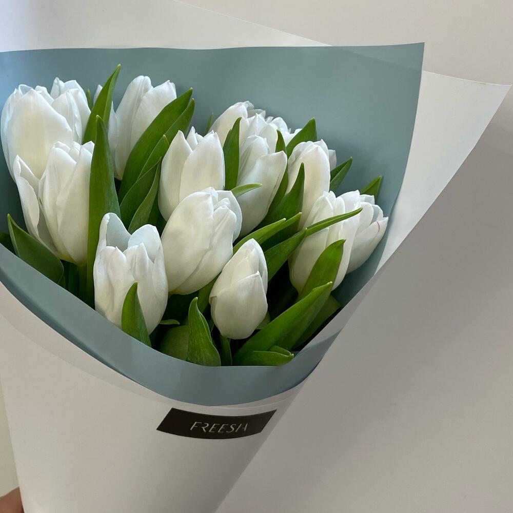 Тюльпан белый – 15 шт.Дизайнерская упаковка – 1 шт.транспортировочная упаковка – 1 шт.