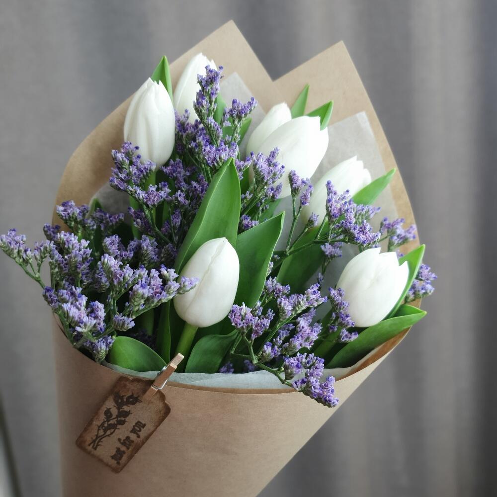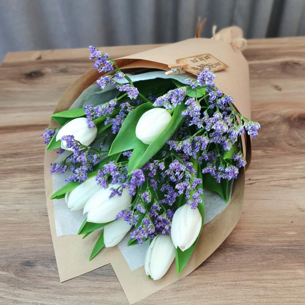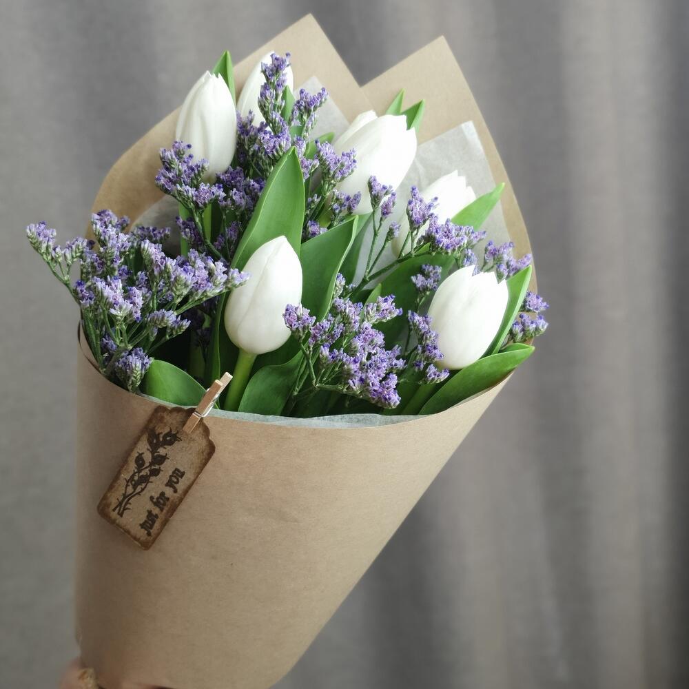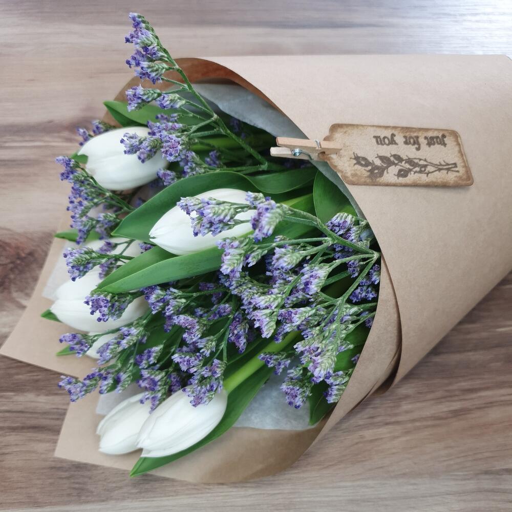 Тюльпан – 7 шт.Лимониум – 1 шт.Упаковка дизайнерская – 2 шт.