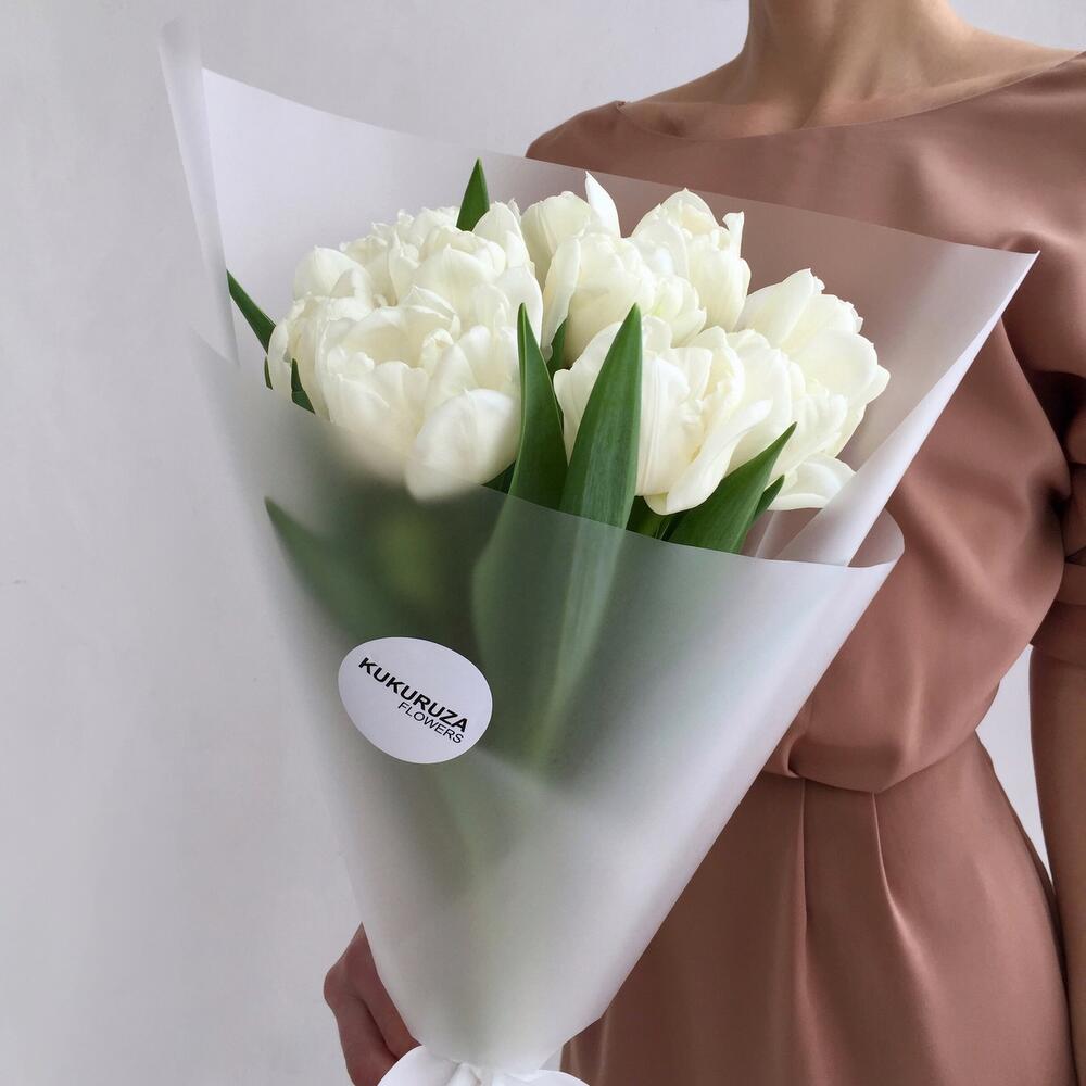 Пионовидный тюльпан – 11 шт.Пленка матовая – 1 шт.Лента атласная – 1 шт.